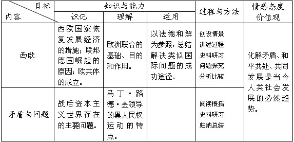 備課應(yīng)從學(xué)生實際出發(fā),制定相應(yīng)的教學(xué)目標和教學(xué)手段。本校學(xué)生起點相對較高,知識面較廣,具備一定的自學(xué)能力。因此,我把本課的教學(xué)重點置于教材的“隱性內(nèi)容”-歐洲煤鋼聯(lián)營和美國黑人民權(quán)運動上,通過對教材內(nèi)容的深入挖掘,以期完成本課所制定的教學(xué)目標。